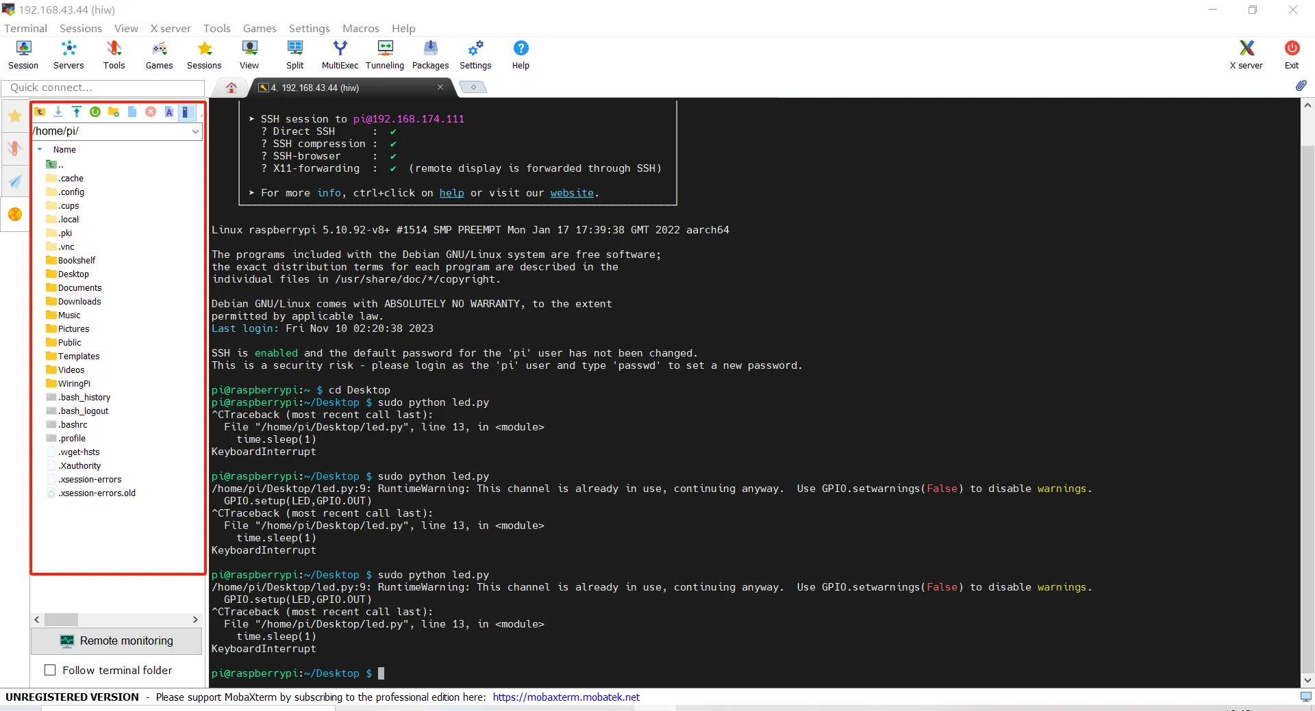 当我们连接完成之后,右边这里会显示树莓派的文件路径